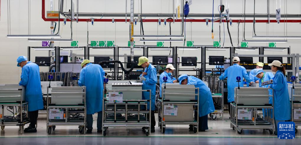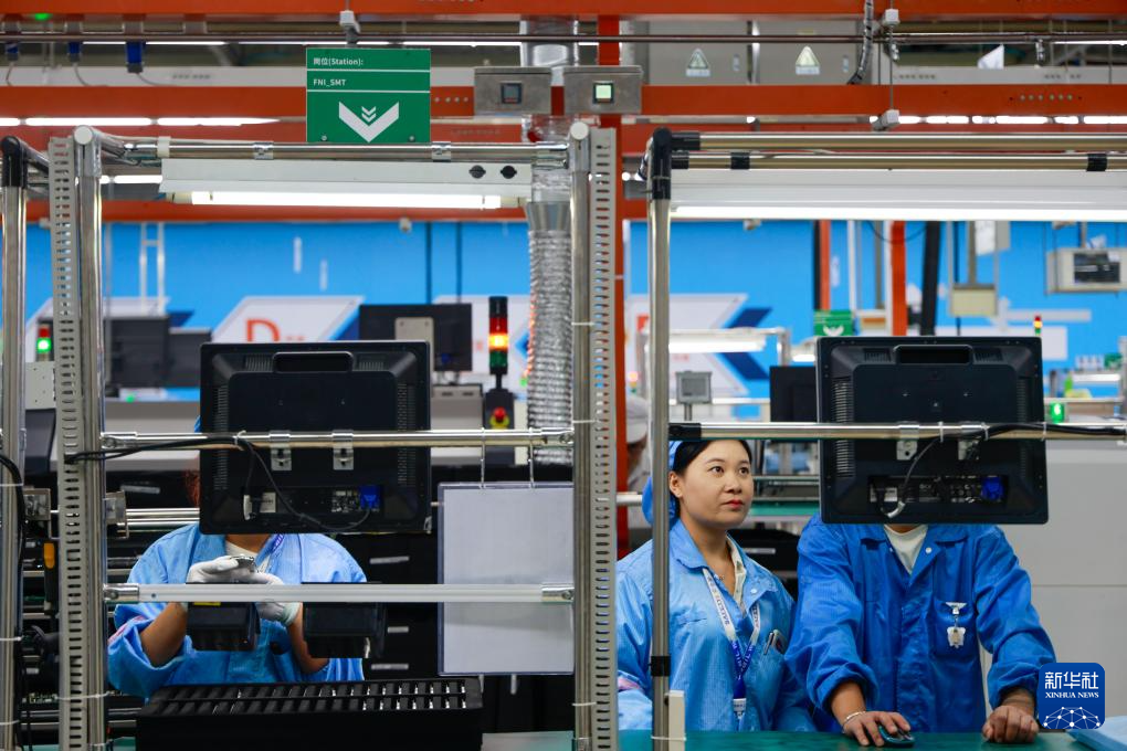 9月15日,工作人员在江苏无锡高新区综合保税区捷普电子(无锡)有限公司的生产车间里进行产品组装及外观检测。新华社记者 刘佳琪 摄