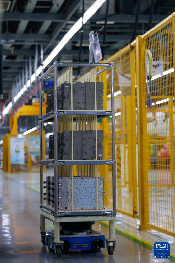 9月15日,一辆AGV自动驾驶小车在江苏无锡高新区综合保税区捷普电子(无锡)有限公司的生产车间里运输原材料。新华社记者 刘佳琪 摄