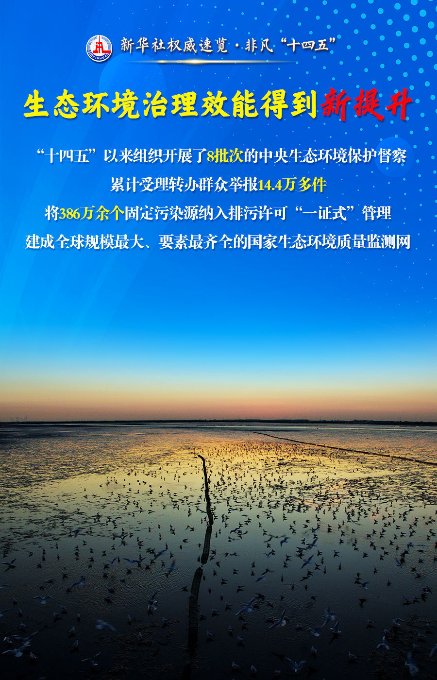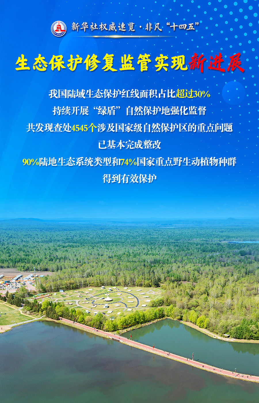 “十四五”时期,我国生态文明建设和生态环境保护工作取得重大成效。19日举行的“高质量完成‘十四五’规划”发布会上,生态环境部部长黄润秋用“五个新”概括了“美丽中国”建设取得的新进展、新成就。跟随海报,一起了解。