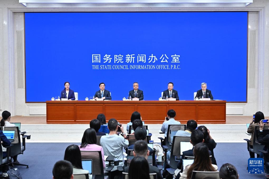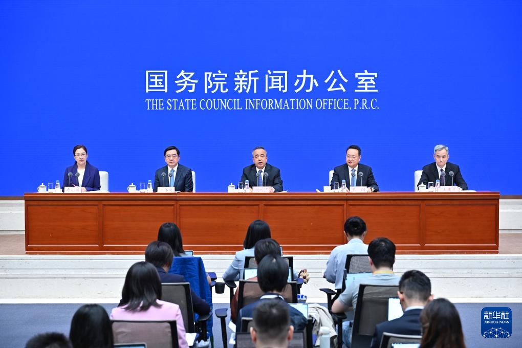 9月19日,国务院新闻办公室在北京举行新闻发布会,发布《新时代党的治疆方略的成功实践》白皮书,中央宣传部副部长王纲,新疆维吾尔自治区党委副书记、自治区主席艾尔肯·吐尼亚孜,新疆维吾尔自治区党委常委、自治区常务副主席陈伟俊,新疆维吾尔自治区党委常委、宣传部部长王建新出席,介绍白皮书有关情况并答记者问。新华社记者 李鑫 摄