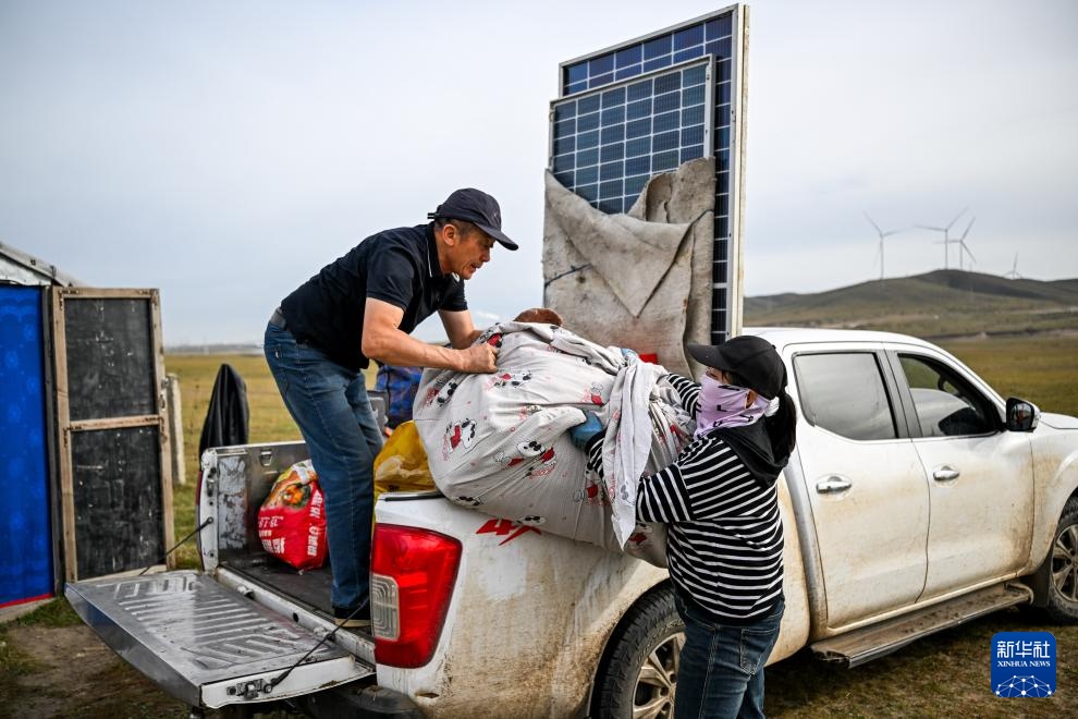 今年52岁的都楞宝力高是游牧转场的“老把式”。“以前都是骑马转场,现在是骑摩托和开车。以前在夏牧场只能搭蒙古包,现在基本都有固定板房,还有太阳能供电,照明、取暖和保存食物都很方便。”都楞宝力高说。