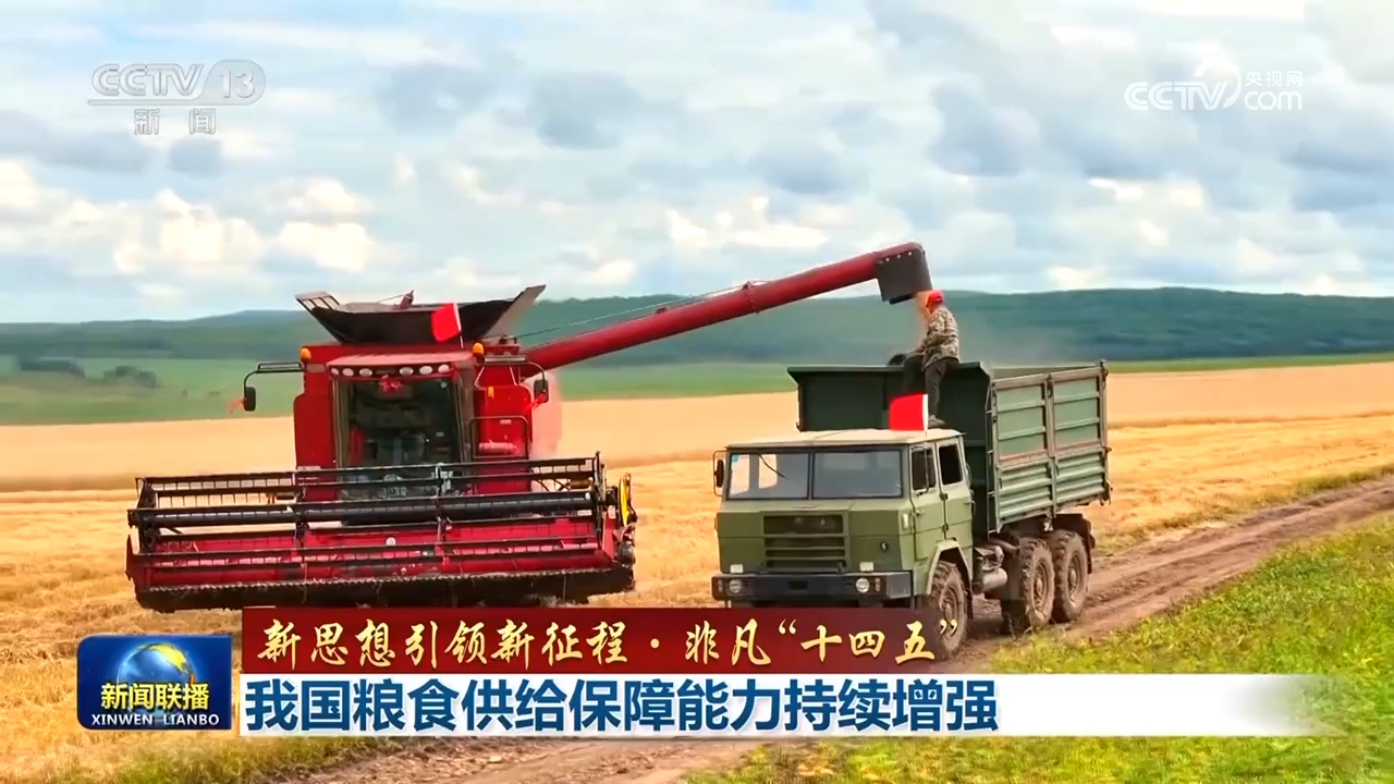 “十四五”期间,从物质基础到机制保障,我国全方位夯实粮食安全根基,粮食年产量稳定在1.3万亿斤以上,2024年首次迈上1.4万亿斤新台阶,14亿多中国人的饭碗端得更牢。