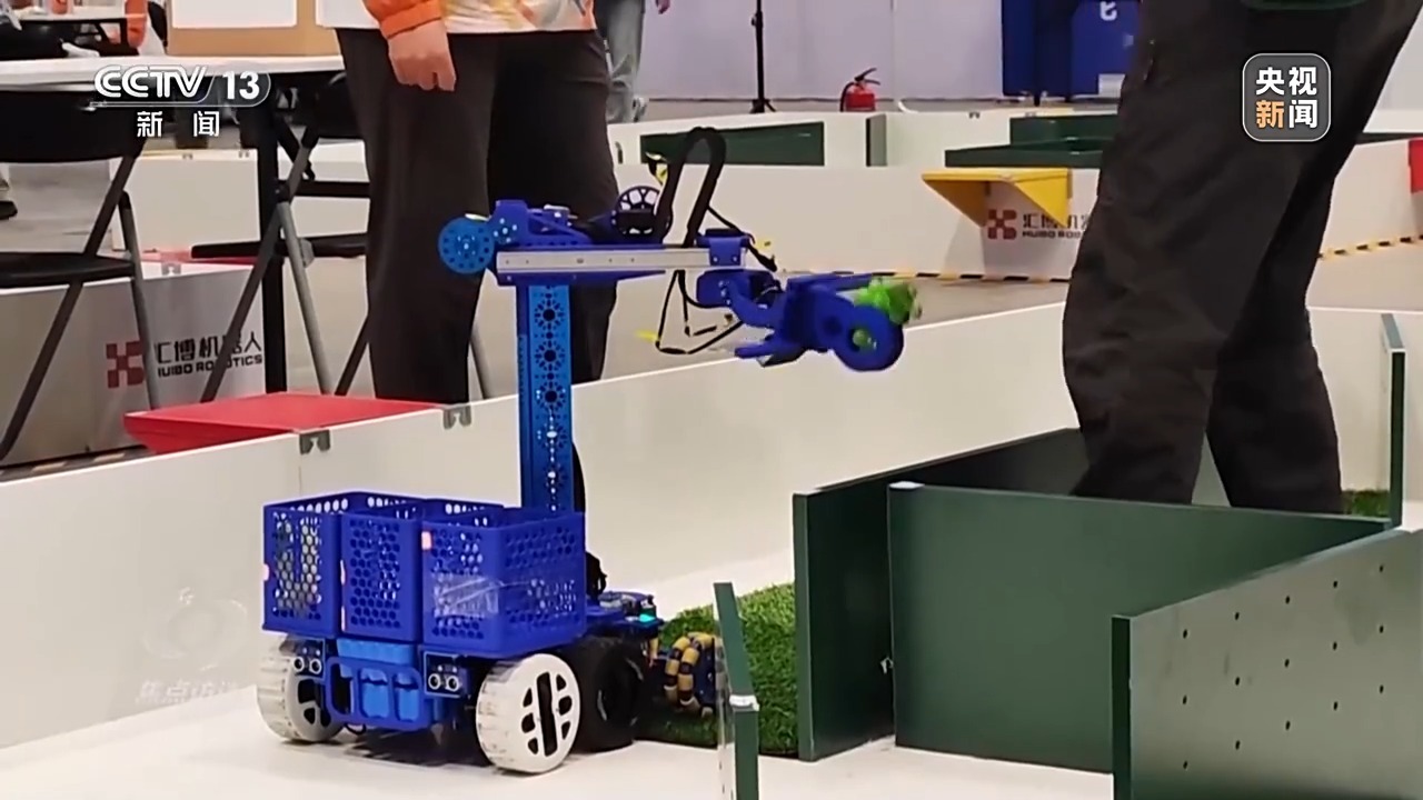 在服务机器人应用技术比赛现场,记者看到,参赛选手们通过编写代码给机器人装上了聪明的“大脑”,让两台服务机器人完成送快递、垃圾分类的工作。