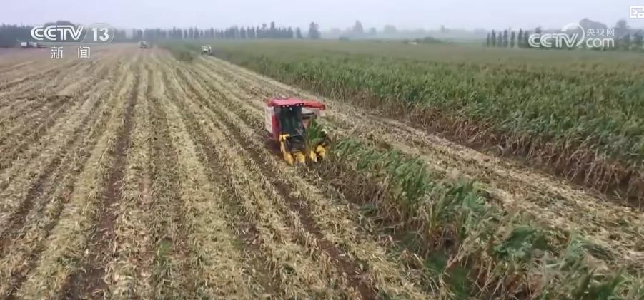连日的阴雨天气,给黄淮海地区的秋粮收获带来挑战。在山东郯城县红花镇,多台履带式收割机正开足马力,对连片大地块的玉米开展集中收获作业。