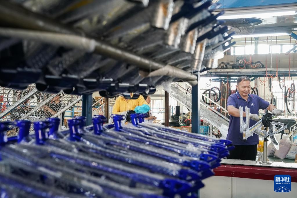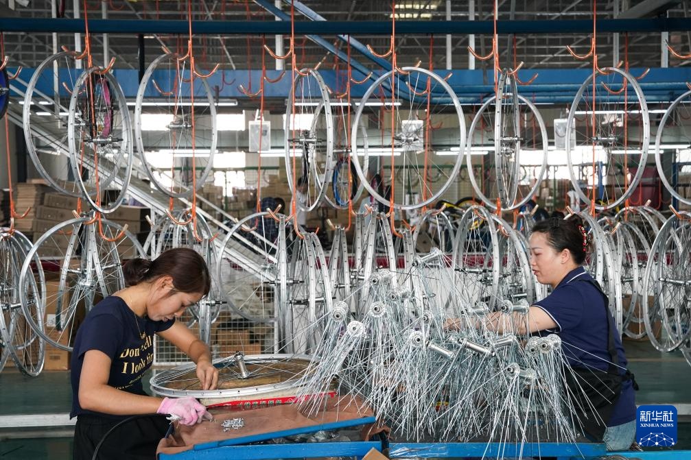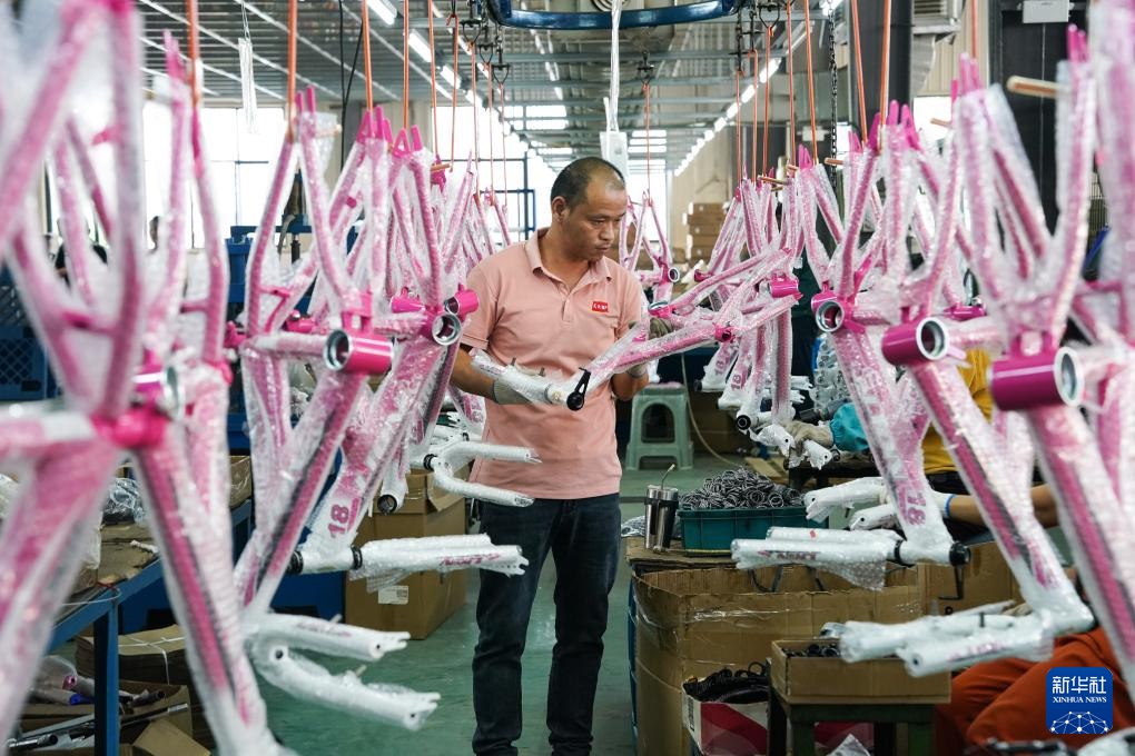 10月10日,工人在五河县一家自行车生产企业内工作。新华社记者 杜宇 摄
