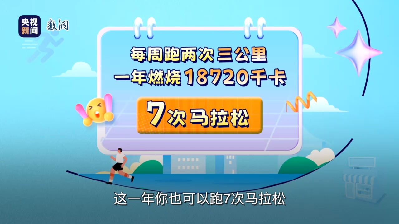 截至2024年末,全国已投放1200多万辆共享单车,共享单车平台数据显示,有超过三分之一的用户一周骑行4次以上。很多人用车轮在城市中“画”下了生动的涂鸦,骑行平台数据显示,全国骑行路线增长两倍多,平均每周人均骑行2.5公里,这大约能消耗125千卡,一年下来就能燃掉22块奶油蛋糕(300千卡)的热量;如果你换成跑步,每周跑两次三公里,一年可以燃烧18720千卡,积少成多,这一年你也可以跑7次马拉松!这就是“十四五”规划落在身边的模样——让城市更低碳,也让生活更轻快。