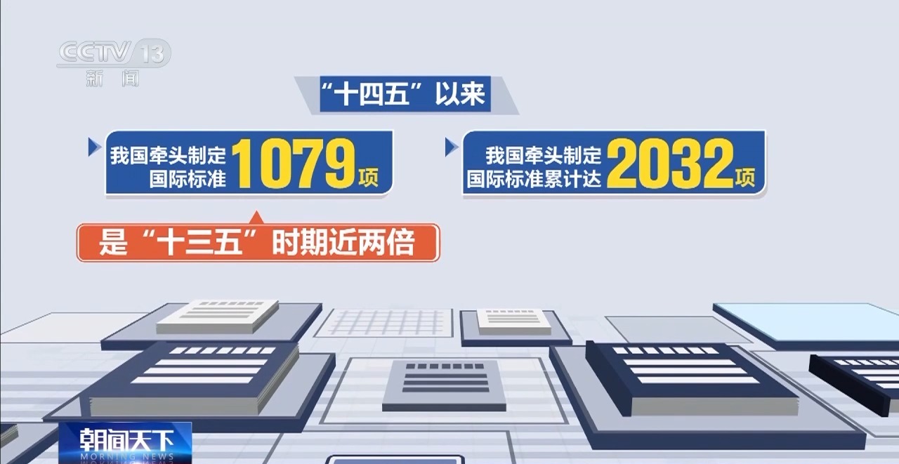 数据显示,“十四五”以来,我国牵头制定国际标准1079项,是“十三五”时期的近两倍。目前,我国牵头制定的国际标准累计达到2032项。