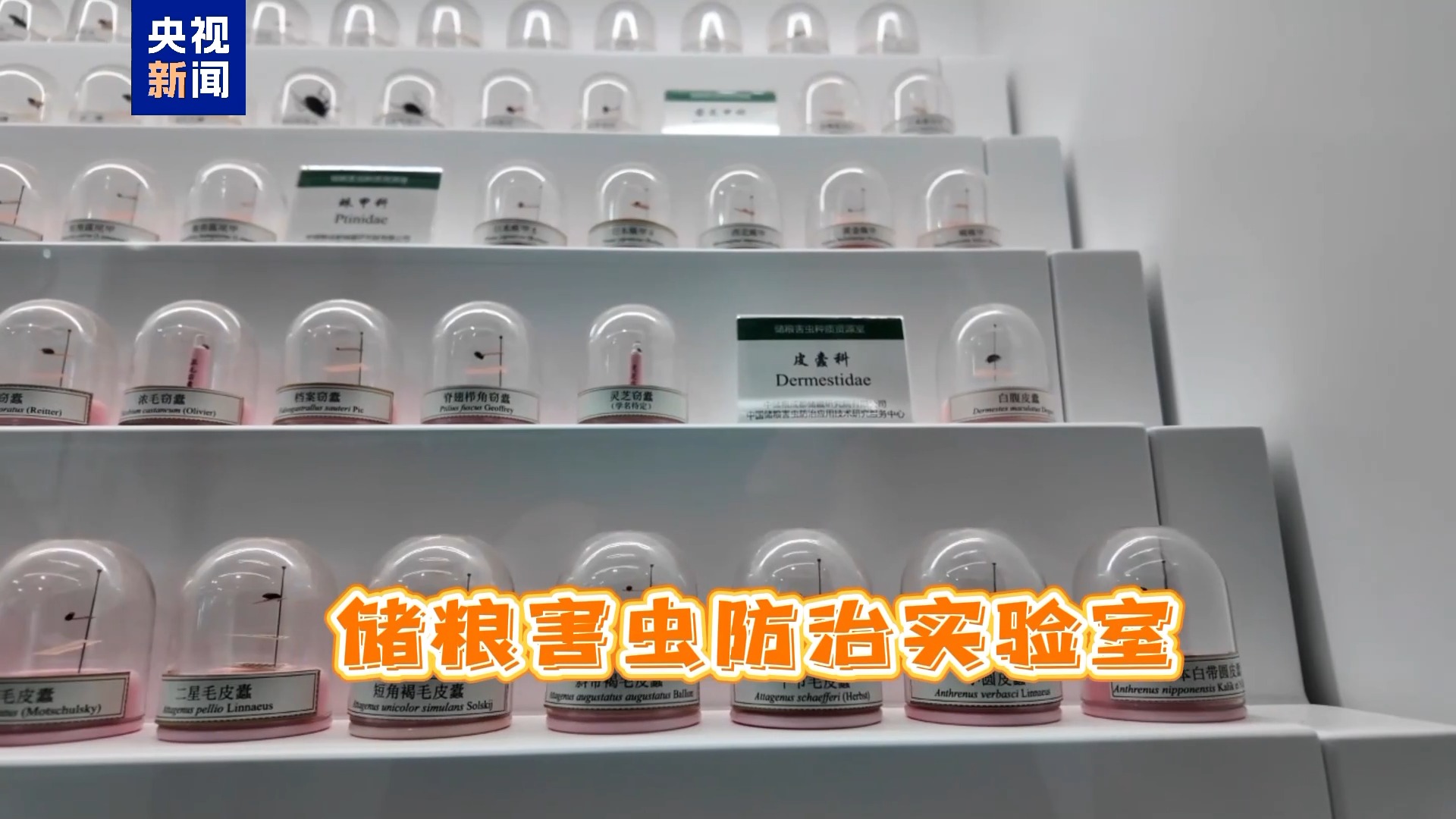 记者来到中储粮成都储藏院,这里的储粮害虫防治实验室是一座害虫档案馆,从活体害虫到标本,常见粮食的各种害虫在这里都被记录在案。