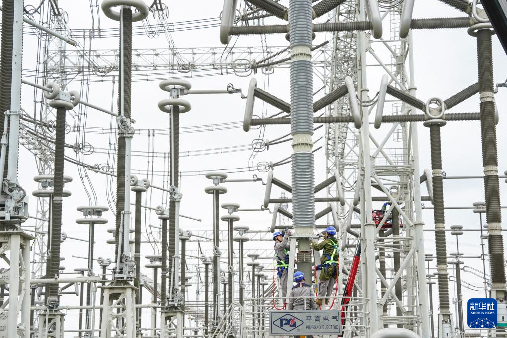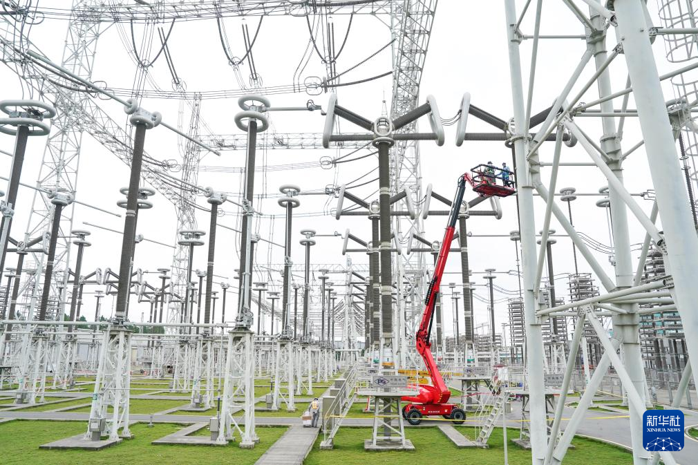 10月20日,安徽送变电工程有限公司检修人员在古泉换流站进行检修作业。新华社记者 杜宇 摄
