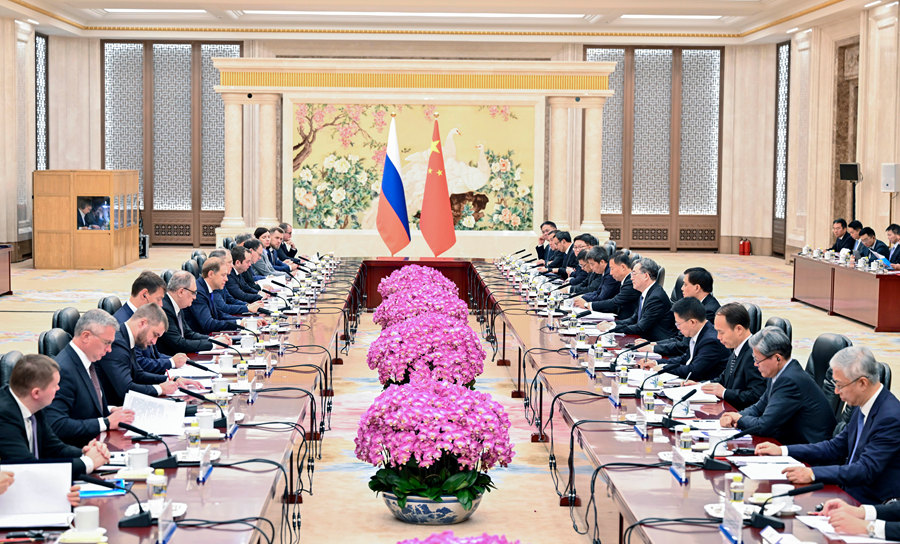 丁薛祥表示,今年以来,习近平主席和普京总统多次举行会晤和通话,擘画了两国关系发展新蓝图。中共二十届四中全会审议通过“十五五”规划建议,为中俄深化各领域务实合作提供了重要机遇。中方愿同俄方一道,在两国元首战略引领下,持续提升投资合作质量和效率,不断丰富中俄新时代全面战略协作伙伴关系内涵,更好增进两国人民福祉。
