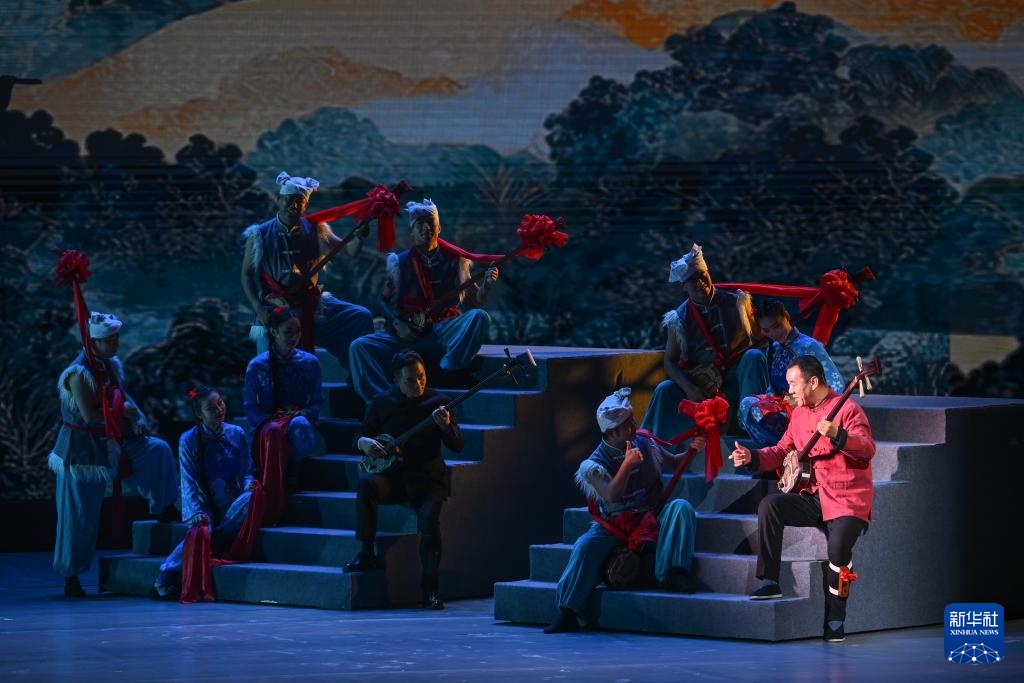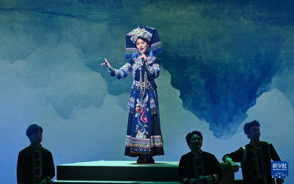11月4日,在重庆群星剧院,演员演唱歌曲《山歌好比春江水》。新华社记者 陈诚 摄