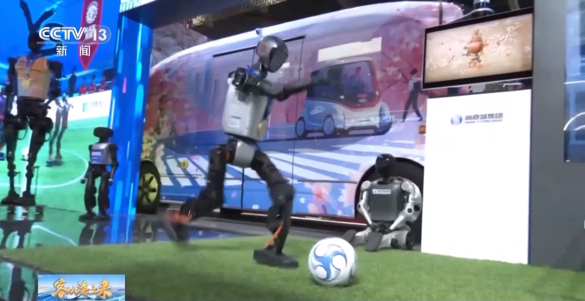 这些机器人挥舞着双手,听到音乐响起就翩翩起舞。除了跳舞之外,机器人还可以做出射门的动作,非常漂亮。
