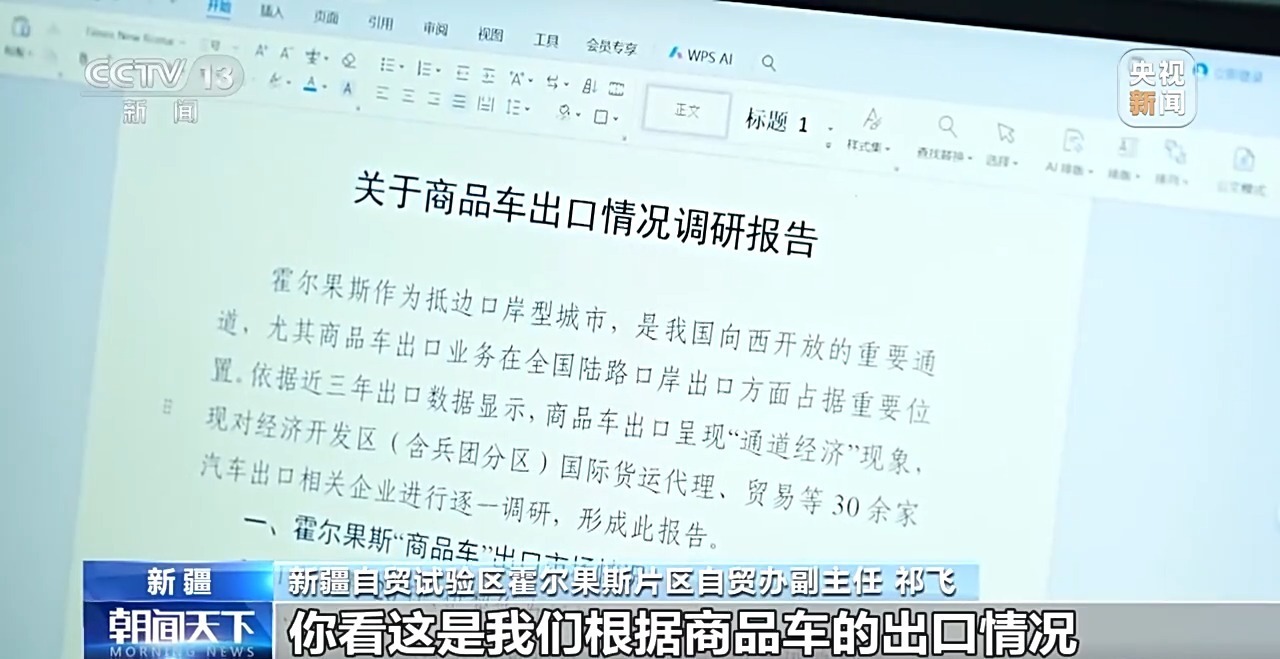 新疆自贸试验区霍尔果斯片区自贸办副主任 祁飞:我们根据商品车的出口情况形成一个调研报告。针对这个报告,我们走访了30余家企业。