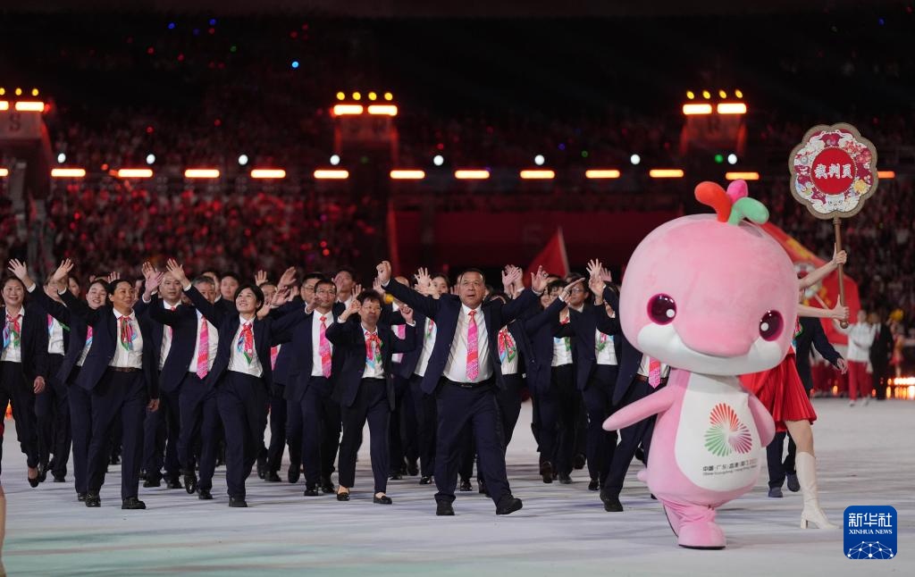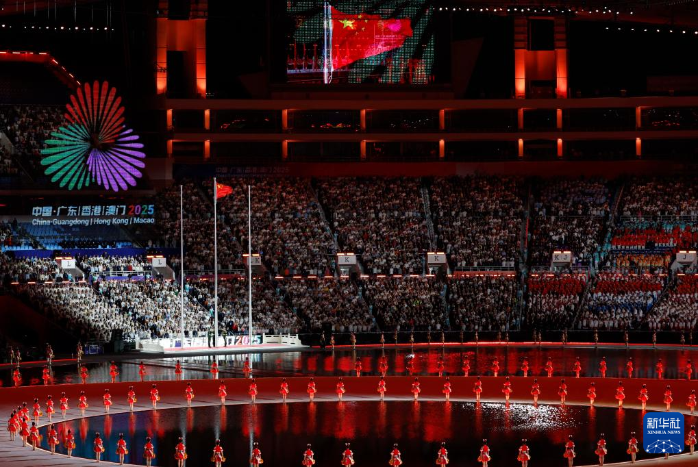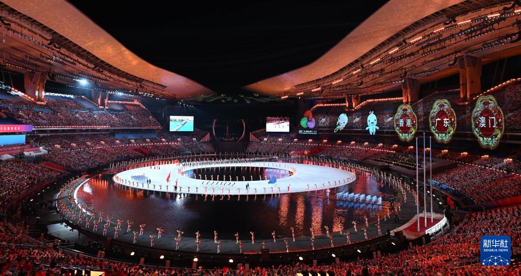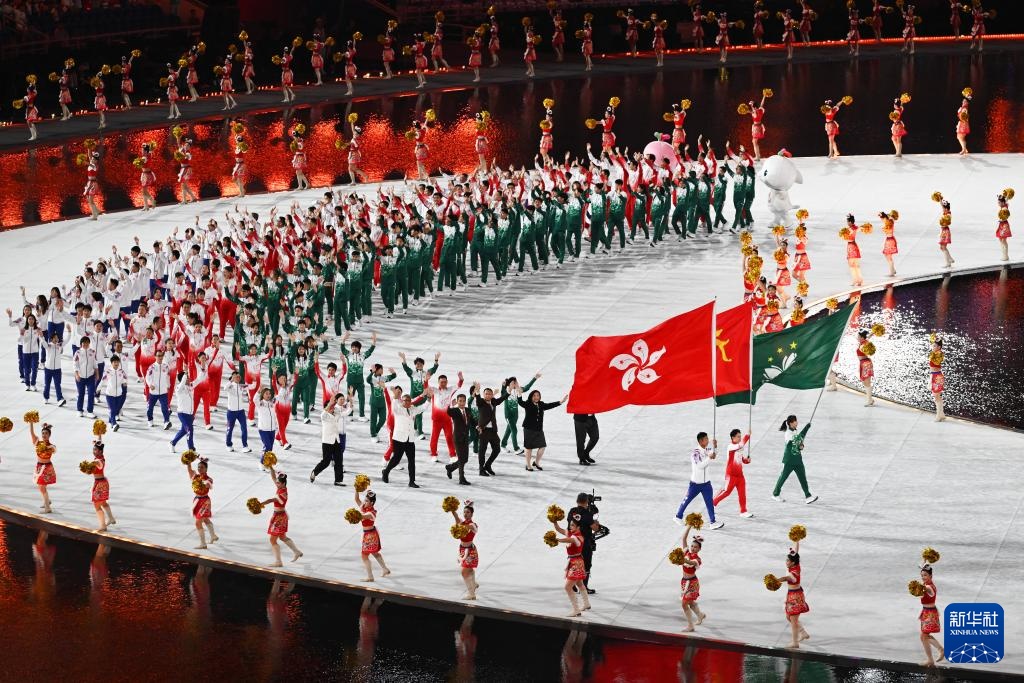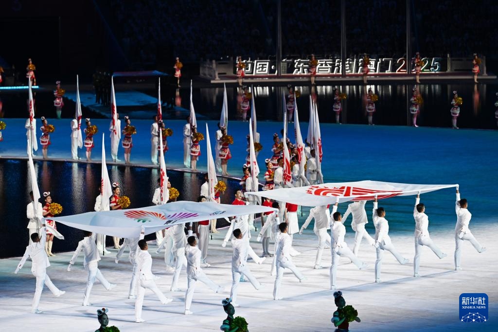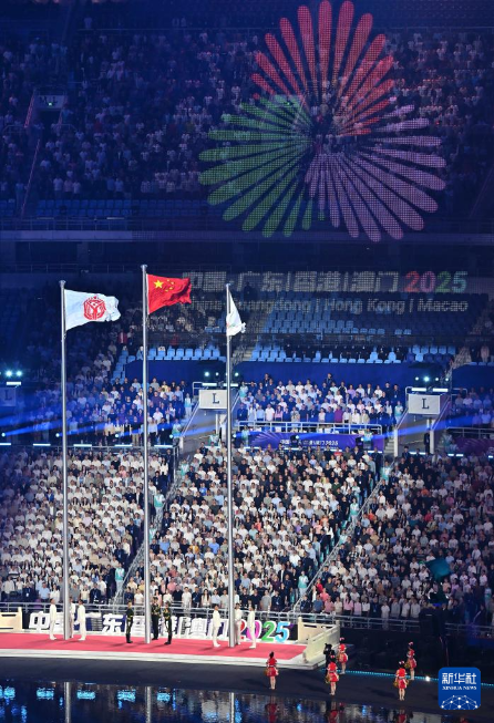 11月9日,广东省体育代表团、香港特别行政区体育代表团和澳门特别行政区体育代表团在入场仪式上共同入场。新华社记者 雒圆 摄