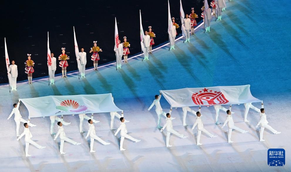 11月9日,新疆生产建设兵团体育代表团在入场仪式上。新华社记者 胡虎虎 摄