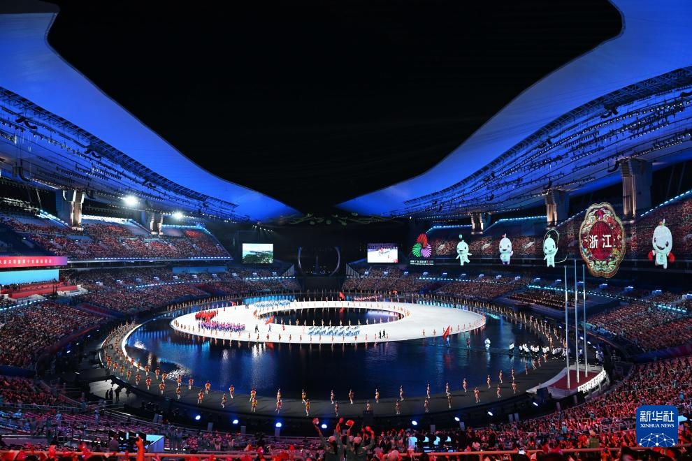 11月9日,浙江省体育代表团在入场仪式上。新华社记者 杜宇 摄