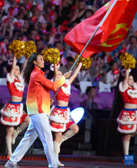 11月9日,湖北省体育代表团旗手郑钦文在入场仪式上。新华社记者 肖艺九 摄