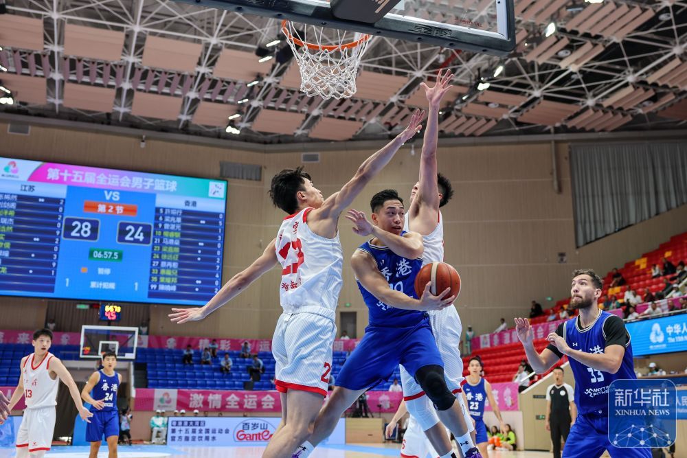 11月10日,在广东省东莞市举行的第十五届全国运动会篮球男子成年组9-11名排位赛中,香港队83比64战胜江苏队。