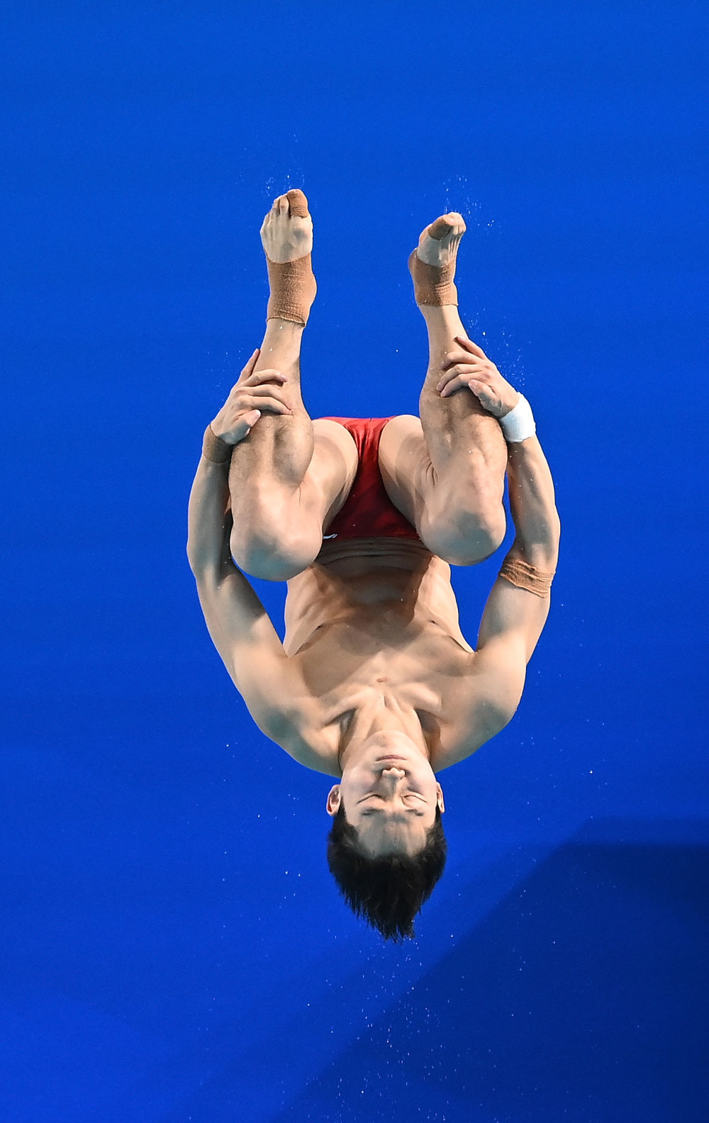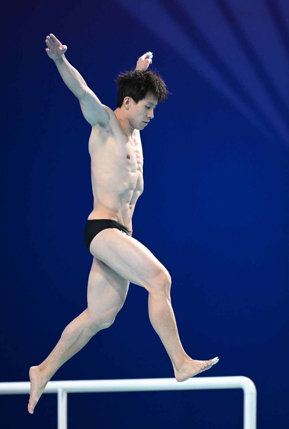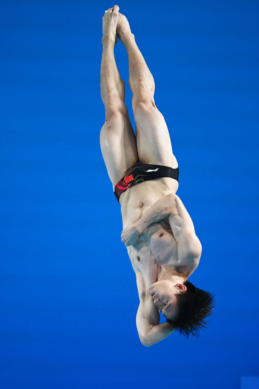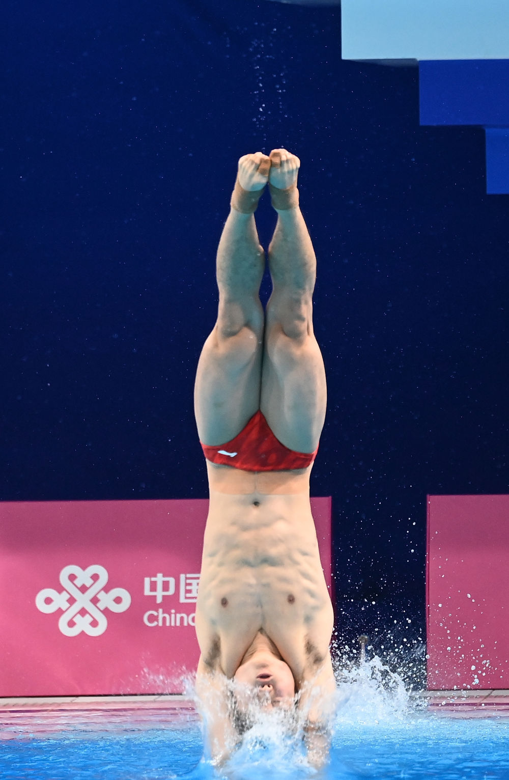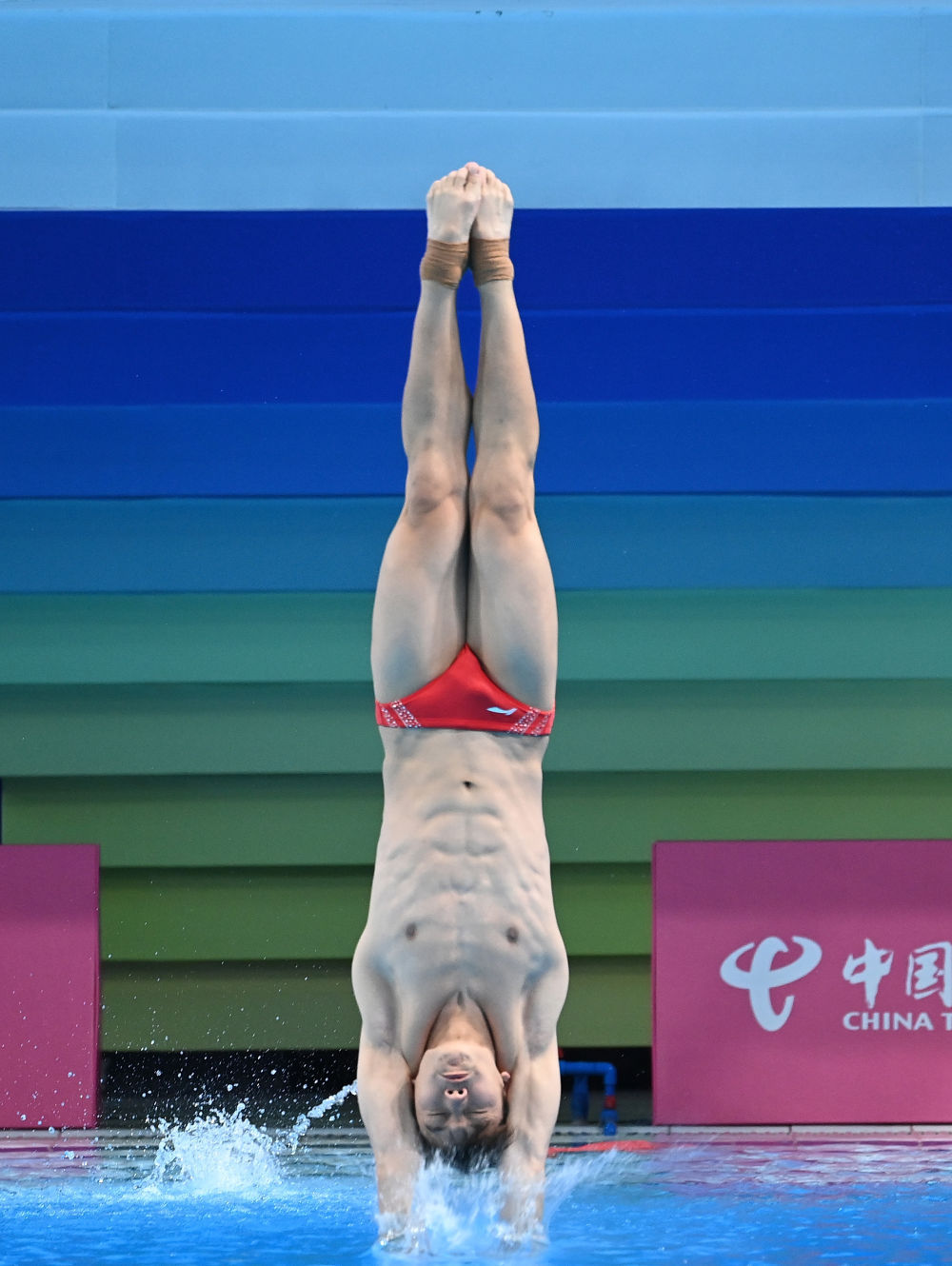 ↑ 广东队选手何超在比赛中入水。 新华社记者 肖艺九 摄