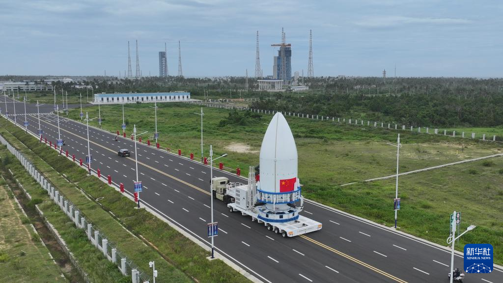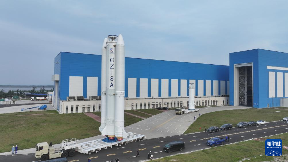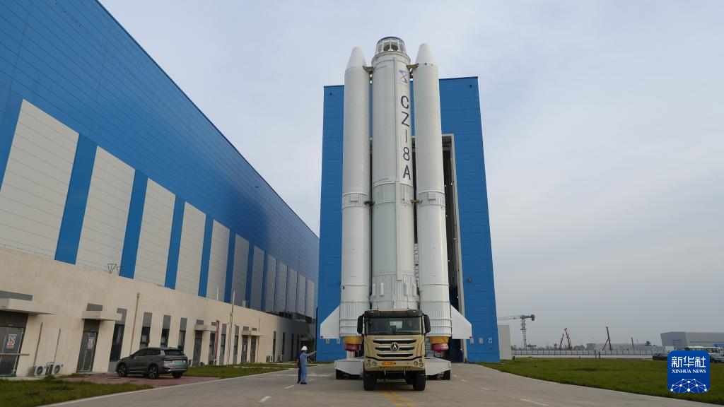11月11日,长八甲遥五火箭箭体被运出测试厂房。新华社记者 陈凯姿 摄