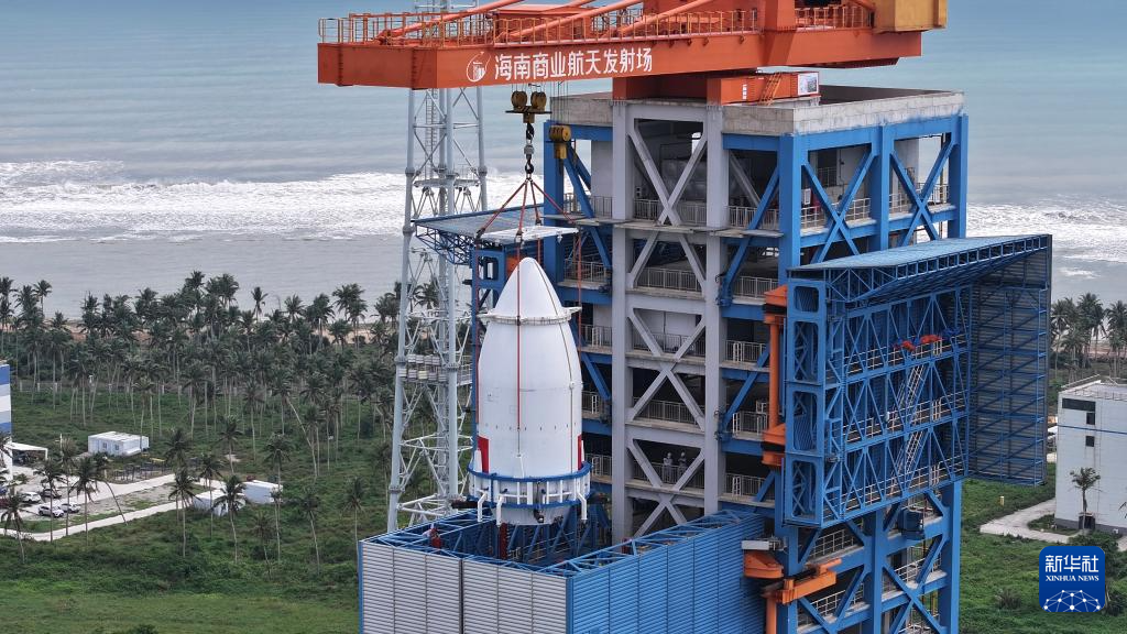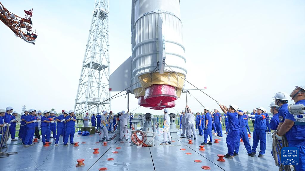 11月11日,发射场工作人员对长八甲遥五火箭进行吊装作业。新华社记者 陈凯姿 摄