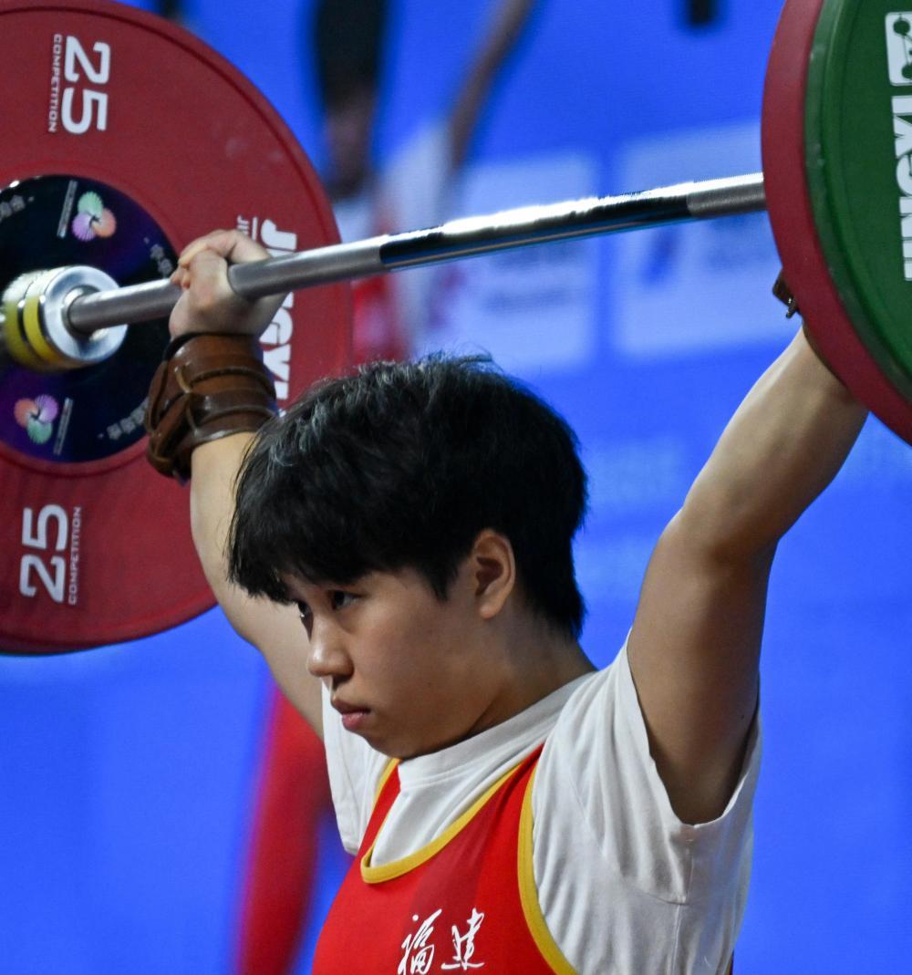 11月11日,福建队选手魏婷娜在抓举比赛中。新华社记者 杨晨光 摄