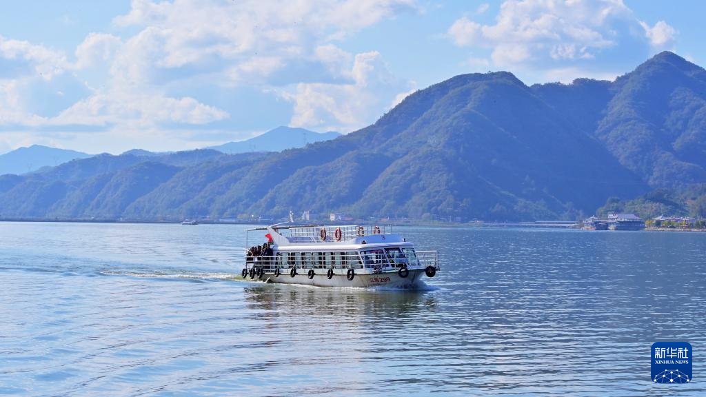10月13日,游客在G331辽宁丹东段沿线的宽甸河口景区乘坐游船游览鸭绿江。新华社记者 吴青昊 摄