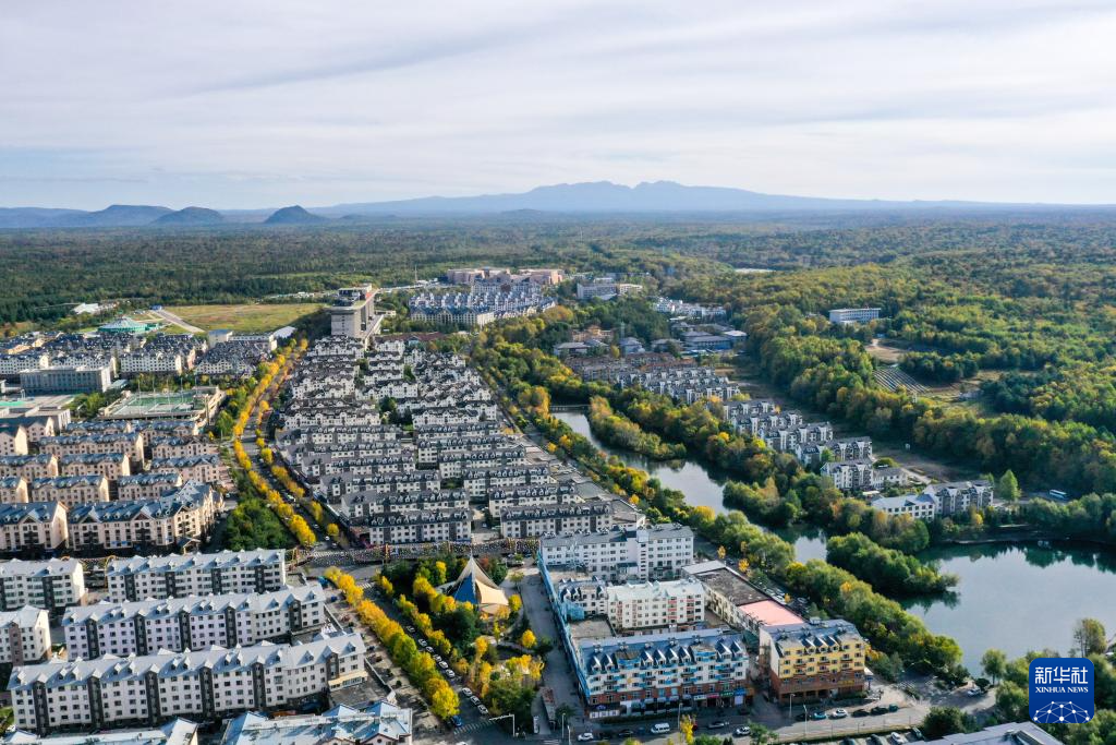 这是9月27日拍摄的吉林省安图县二道白河镇风景(无人机照片)。新华社记者 张楠 摄
