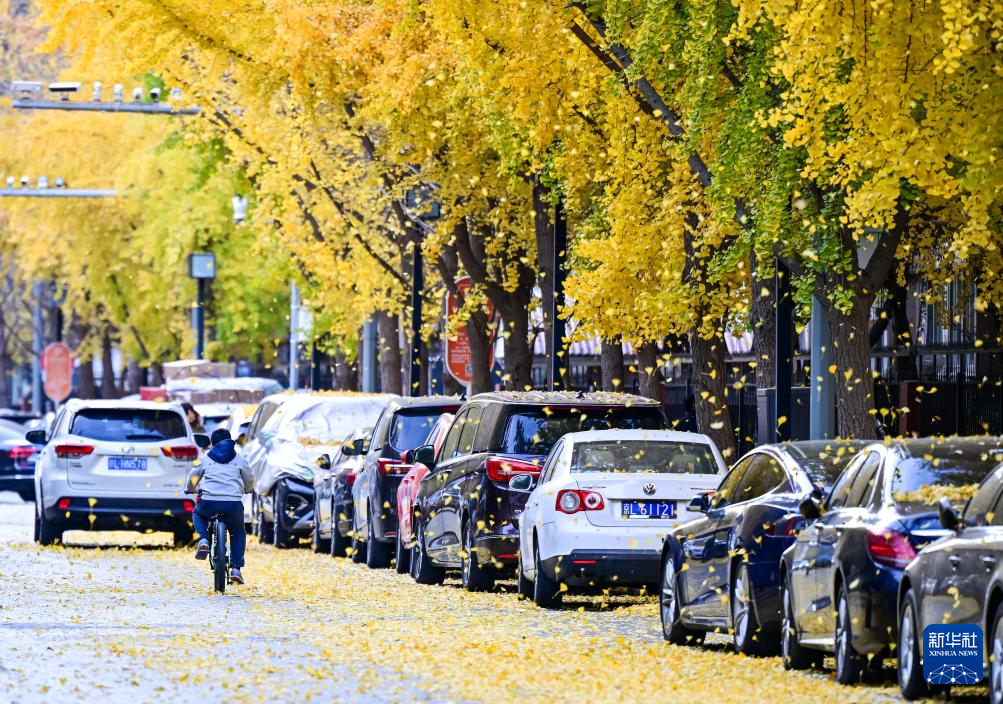 11月12日,行人骑行在北京西城区什坊小街上。新华社记者 陈晔华 摄