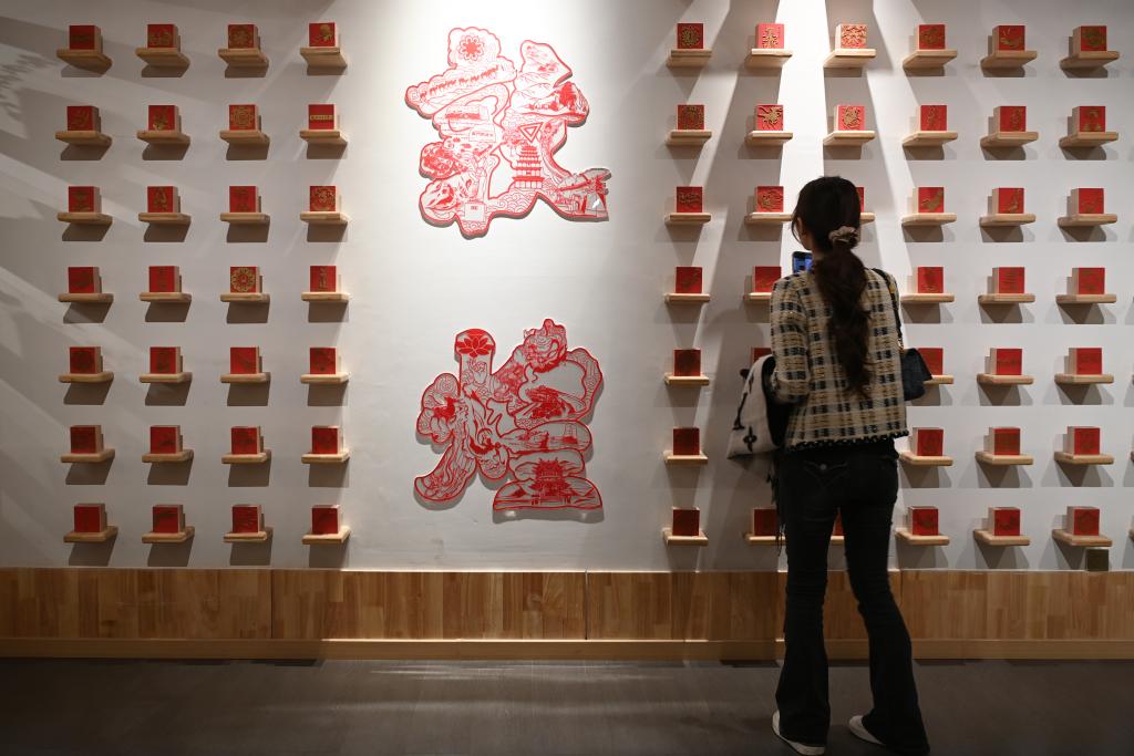 在这里,600余种、7大类印章琳琅满目,游客可以亲身体验版画印、数字喷印、套章印等十余种印刷方式。其中,套章印尤其受青睐,通过4至7种不同颜色印章的搭配,可以呈现赭红、石绿等丰富的敦煌色彩。形形色色的印章还可拓在卷轴上,成为融合古典与现代的创意礼品。