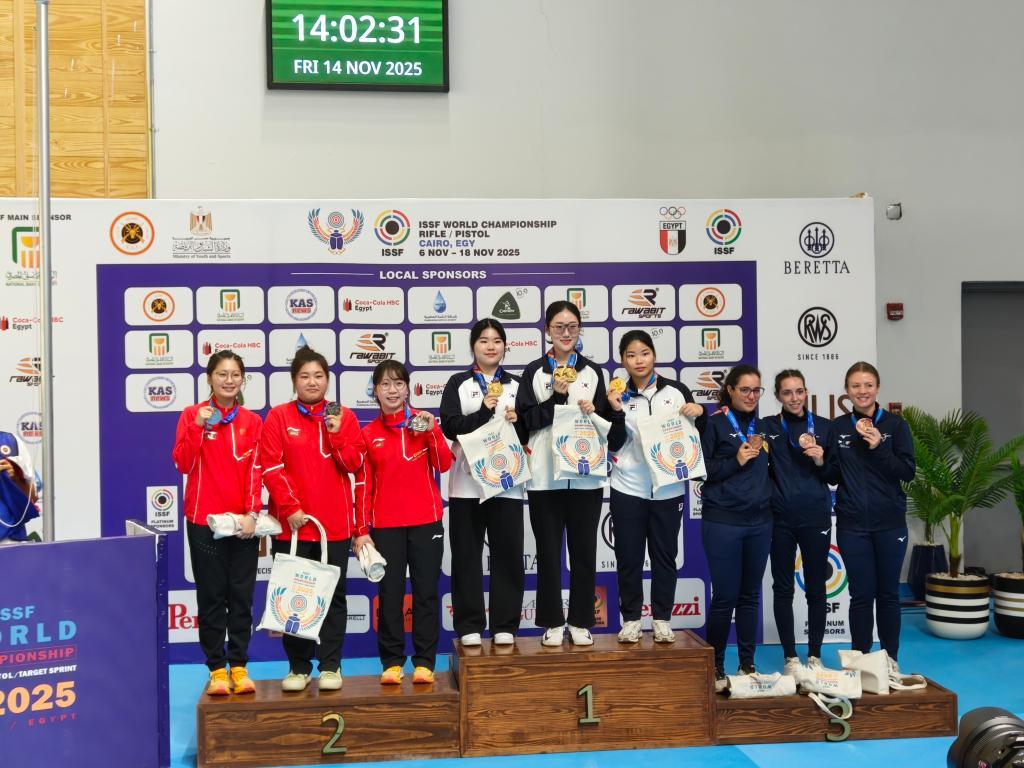 新华社开罗11月14日电(记者牛梦彤、姚兵)在14日的射击世锦赛比赛中,4金在手的姚千寻再夺2银,中国队还在男子50米步枪卧射团体项目中夺冠并打破世界纪录。