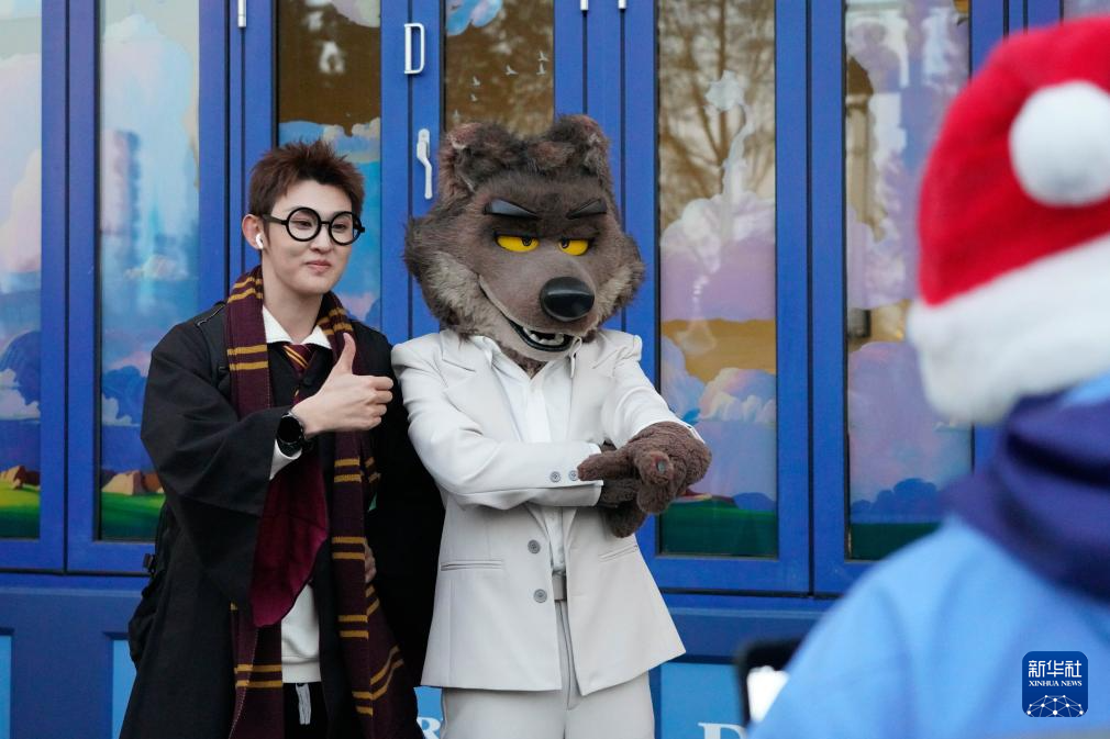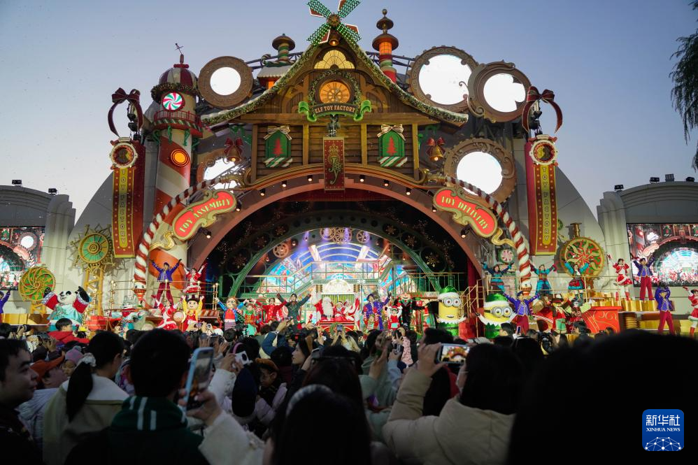 这是11月14日在北京环球度假区拍摄的冬季限定演出“最棒的礼物”。新华社记者 谢晗 摄
