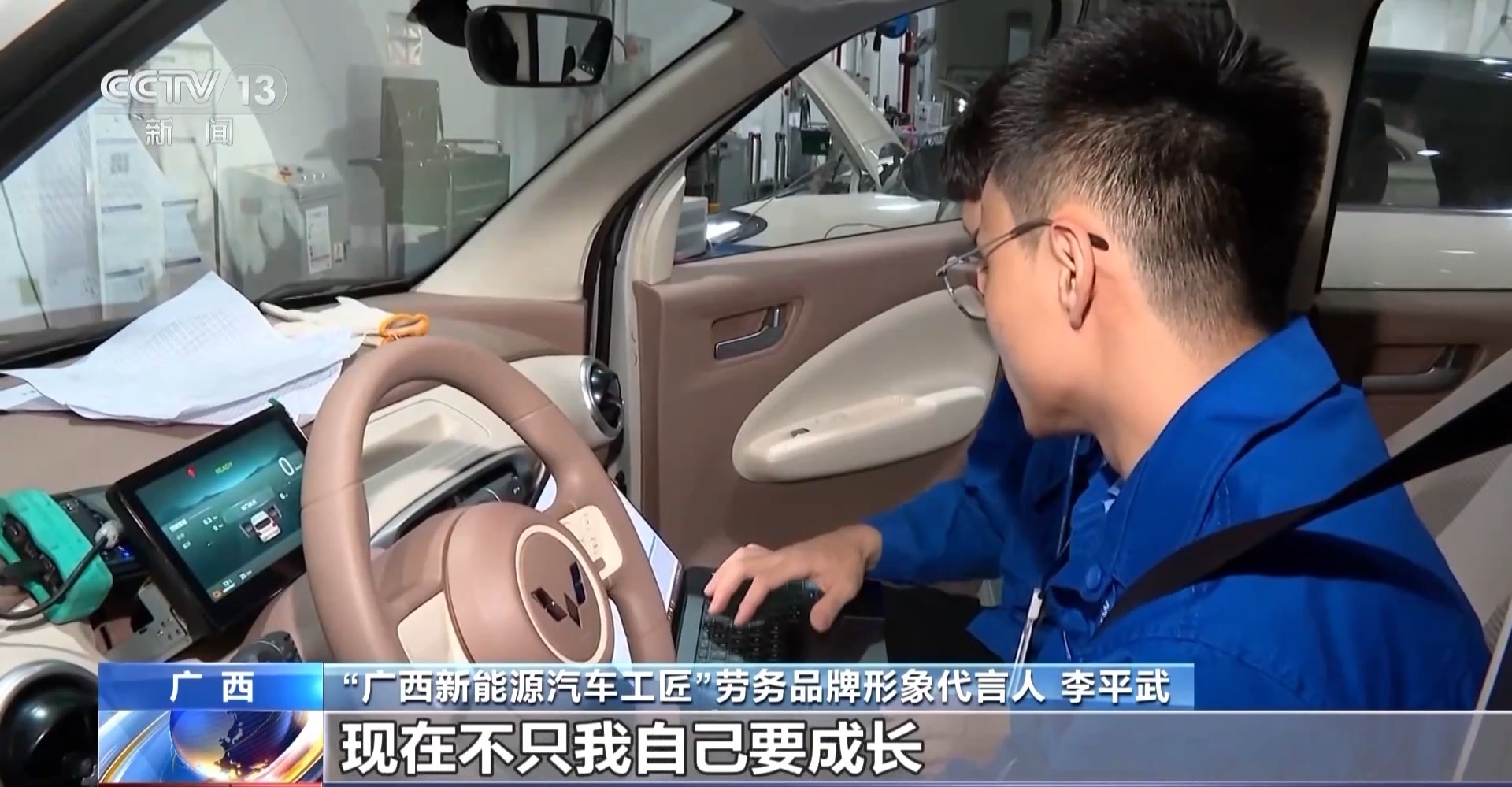 “广西新能源汽车工匠”劳务品牌形象代言人 李平武:我们把调试时间从两天压缩到40分钟。现在不只我自己要成长,还要把人才梯队建设好,我们每年培训2000到3000人次。