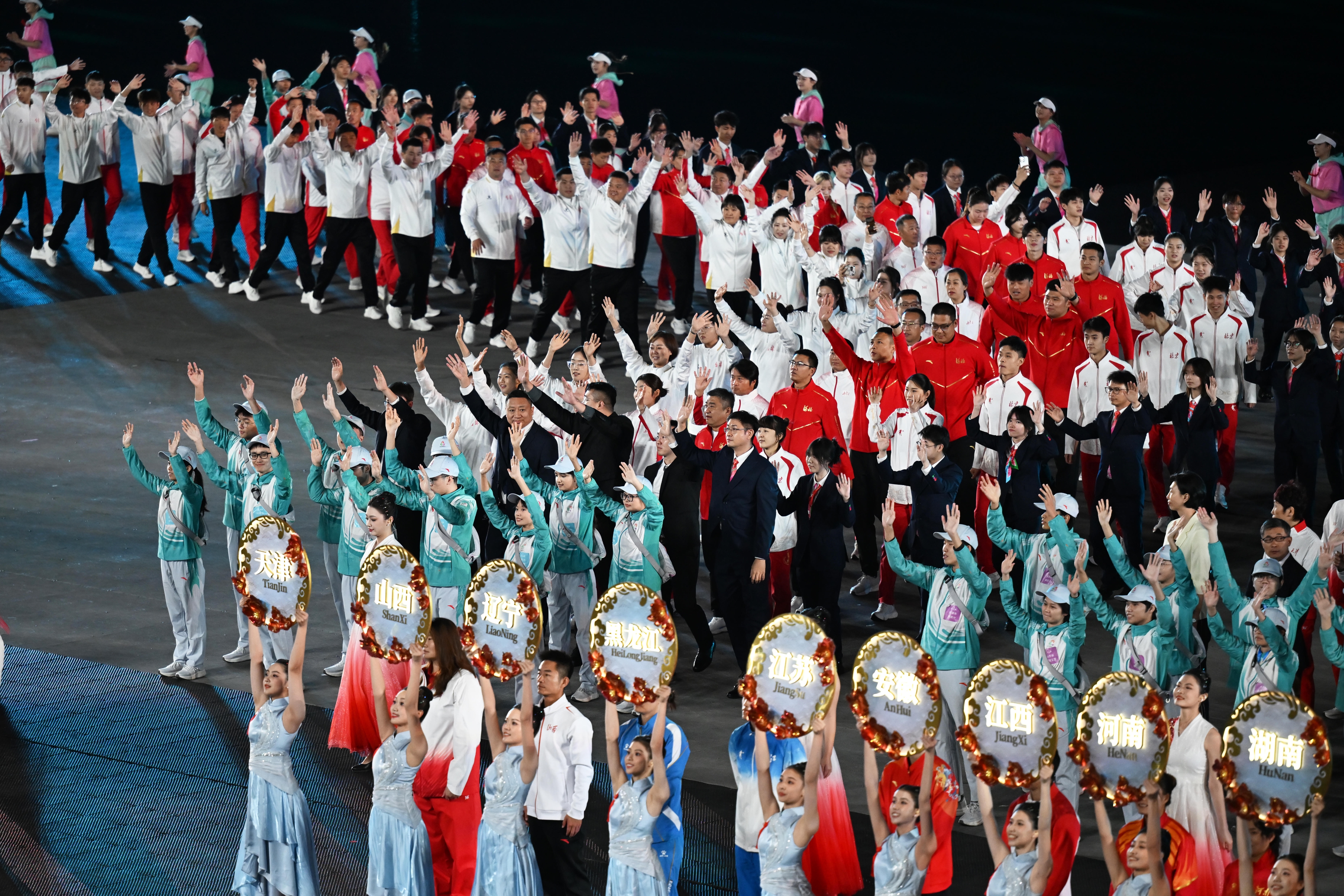 漫天星辉闪耀时,万千豪情竞风流。马龙、潘展乐、苏炳添、王霜……熟悉的面孔接连出现,来自五湖四海的运动员、教练员和裁判员一同入场。