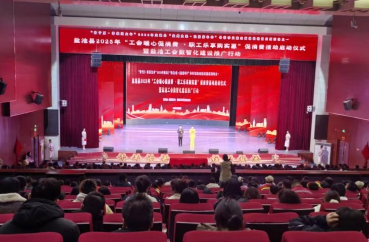 此次活动由盐池县总工会、盐池县工业信息化和商务局联合主办,旨在响应扩大内需政策,惠及全县工会会员,同时推动工会服务数智化升级,助力地方经济高质量发展。县相关部门负责人、各级工会代表、新业态职工代表、困难职工代表、商户代表等1000余人出席活动。