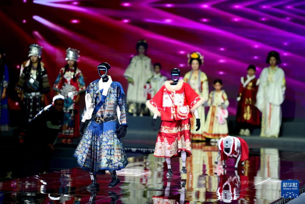 11月22日,机器人在2025秋冬汉服新品发布会上走秀。新华社记者 郭绪雷 摄