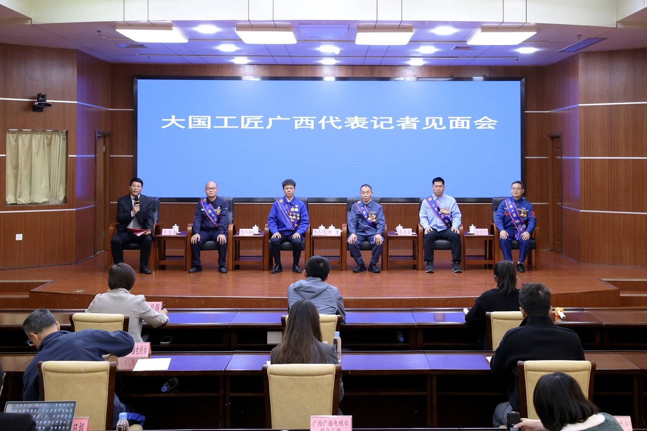 11月25日,广西壮族自治区总工会在南宁举行大国工匠广西代表记者见面会。全区5位来自不同行业的大国工匠和记者见面交流,讲述他们干一行、爱一行、精一行的奋斗历程。