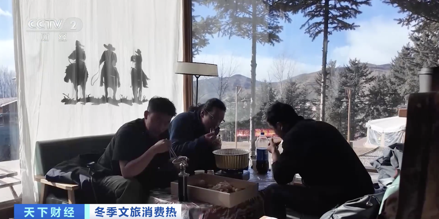 总台记者 崔建军:在雪地里玩累了,可以和家人朋友走进帐篷或木屋,围坐在火炉前,喝茶、聊天,还可以烤红薯、柿饼,在寒冷的冬天感受融融暖意。