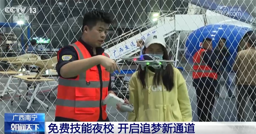 在广西交通技师学院,学习无人机课的学员们先在阶梯教室进行理论培训,然后到专业机房进行模拟操作,最后在试飞场实操试飞……免费享受和专业大学生一样的学习待遇。