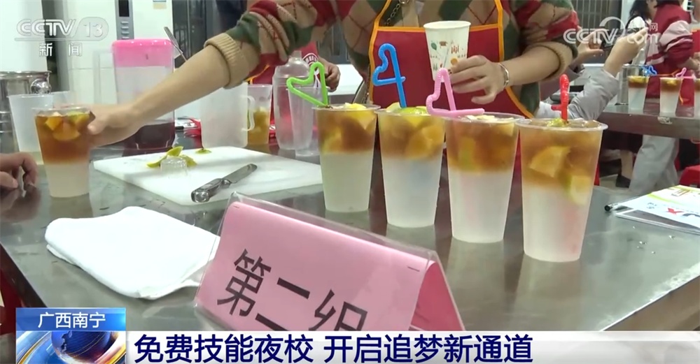 一家培训学校承办的手打柠檬茶制作课程,不仅免学费,就连上课时使用到的食材耗材和全部器具也都由学校免费提供。