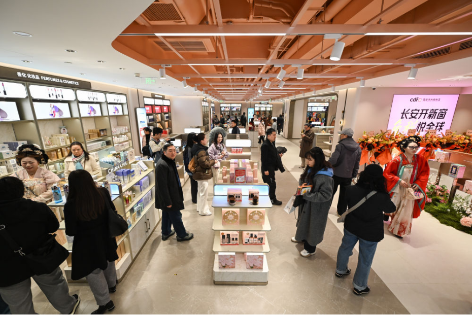 11月26日,顾客在西安市内免税店有税商品区选购商品。新华社记者 邹竞一 摄