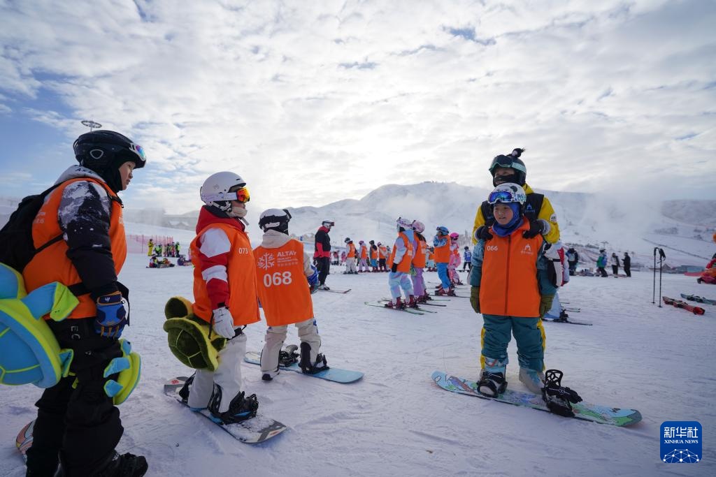 12月1日,学生在阿勒泰将军山国际滑雪度假区练习单板滑雪。新华社记者 阿曼 摄