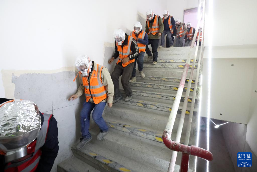 12月2日,项目工作人员在进行消防应急逃生演练。新华社记者 丁汀 摄