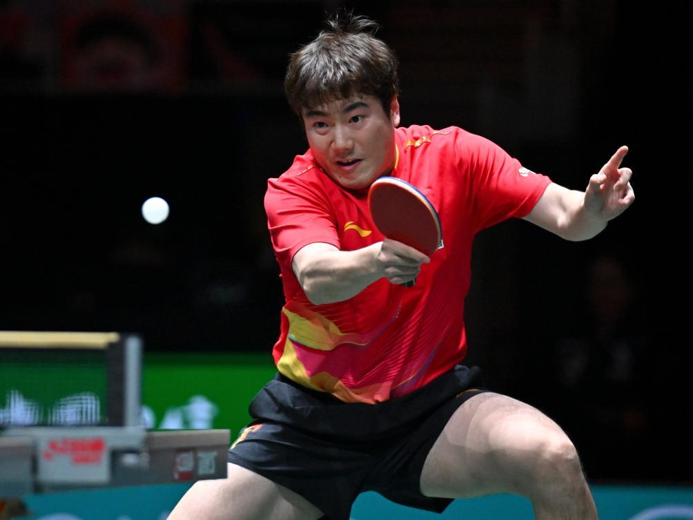 12月4日,中国队选手梁靖崑在男单比赛中。新华社记者 胥冰洁 摄