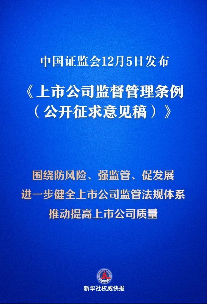 12月5日,中国证监会发布《上市公司监督管理条例(公开征求意见稿)》,这意味着我国将迎来首部专门的上市公司监管行政法规。