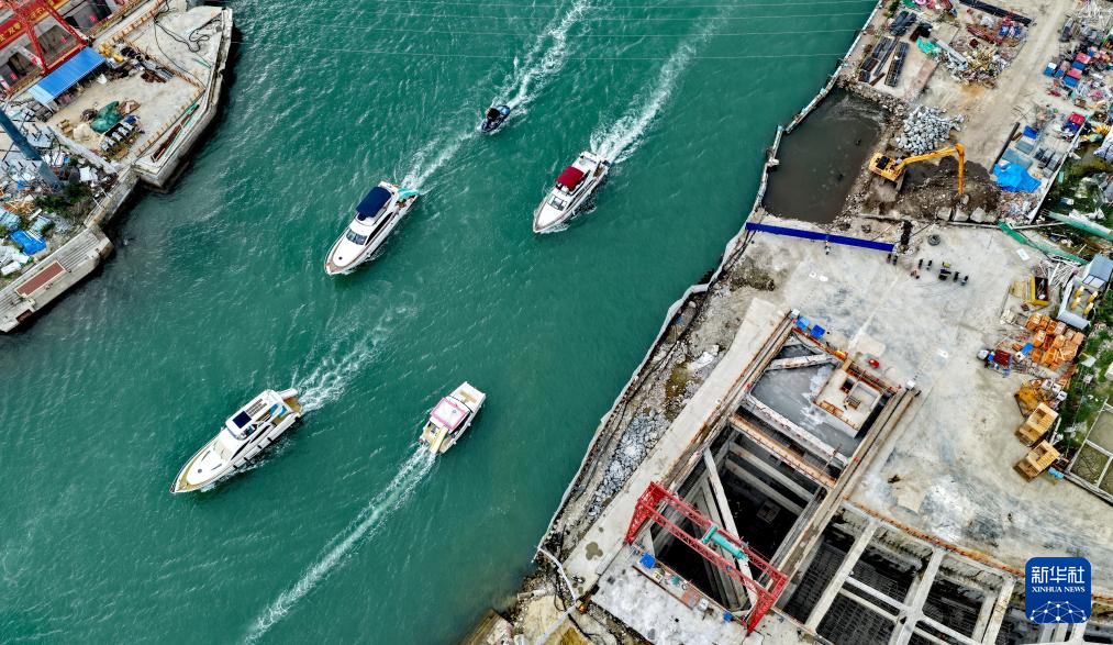 12月5日,游艇从三亚河口通道工程项目上驶过。新华社记者 赵颖全 摄