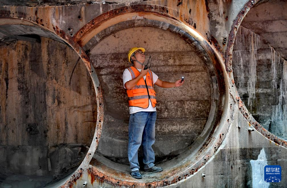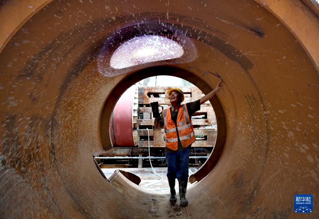 12月5日,工人在三亚河口通道工程项目现场检查贯通管相邻管节状态。新华社记者 赵颖全 摄