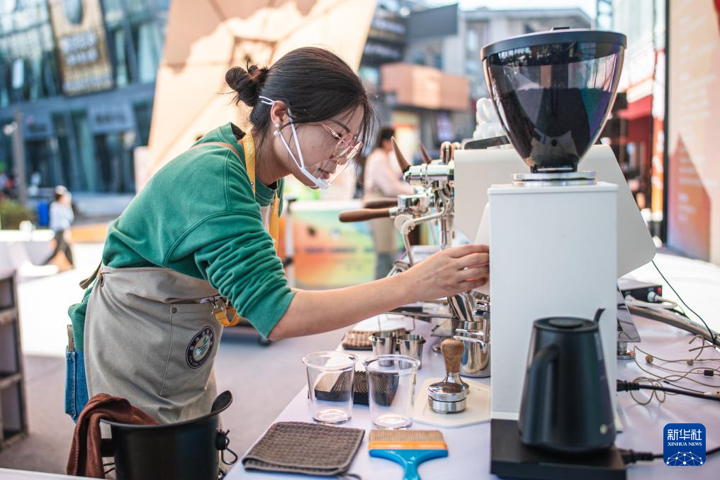 12月5日,咖啡师在活动现场制作咖啡。新华社记者 王冠森 摄