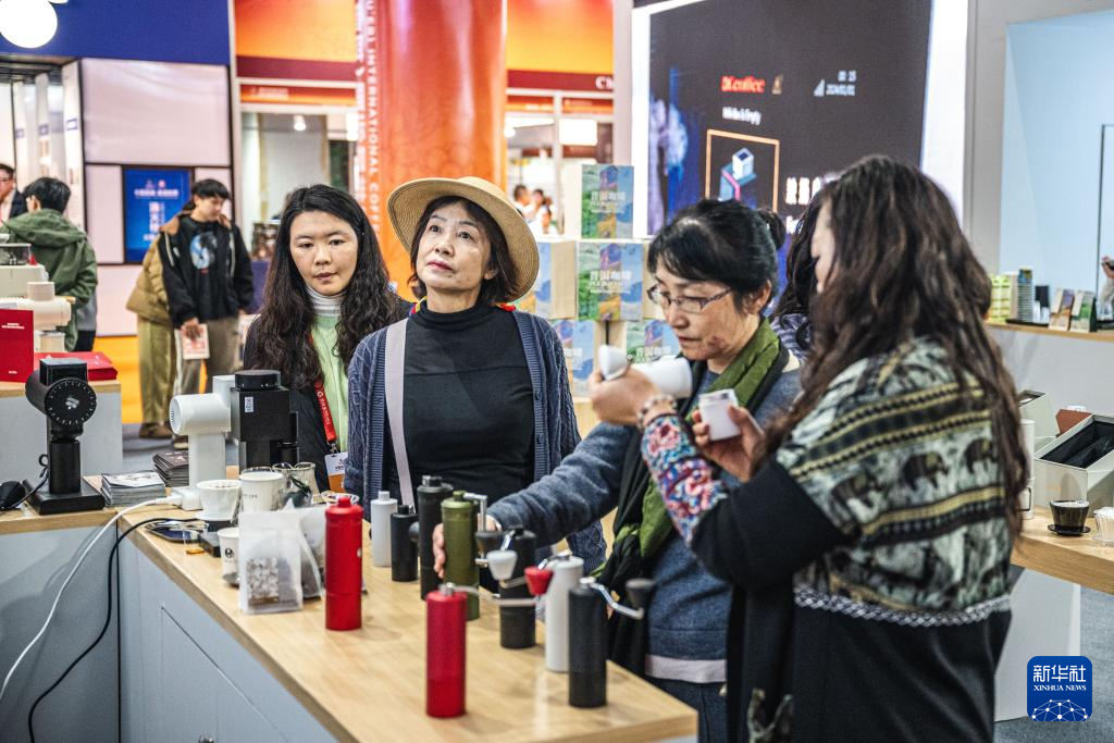 12月5日,人们在活动现场查看咖啡产品。新华社记者 王冠森 摄