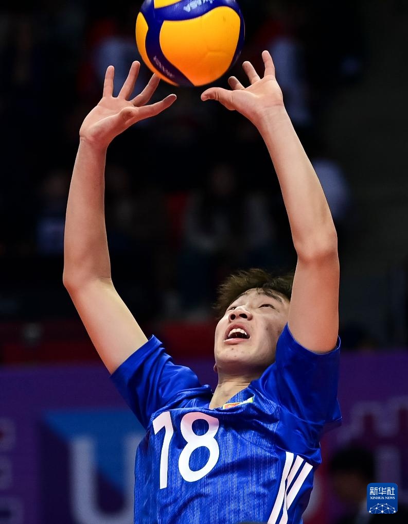 12月5日,中国男子一队球员张洪昊在比赛中传球。新华社记者 邹竞一 摄